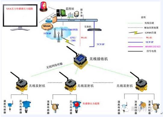 無線傳感器支持電池供電,適合于因距離遠或地形復雜的而導致無法布線的監測點,不存在監控盲點。